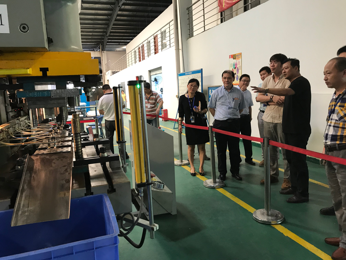 走出会议室,两化融合审核专家在制造中心总经理潘耀佳的陪同下参观了精益车间,分别考察了五金加工车间、注塑车间三区、表面处理车间、106仓、测试中心、电热车间等。一路上,姜老师仔细查看了刀片加工、五金冲压连续冲、装配总装精益线、自动半自动化工装夹具、产线电子看板等自动化操作和信息采集设备,并不时提出中肯的意见。潘总表示,工厂将全力配合公司两化融合管理体系的实施推进。