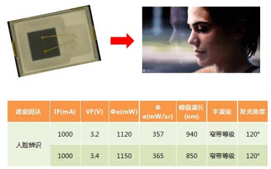 德豪润达器件带来的3D精确度人脸识别红外LED封装,提供高于环境光分辨率高的850 & 940nm规格,小尺寸并且窄带等级的紧凑封装,适合绝大部分的全面屏手机要求: