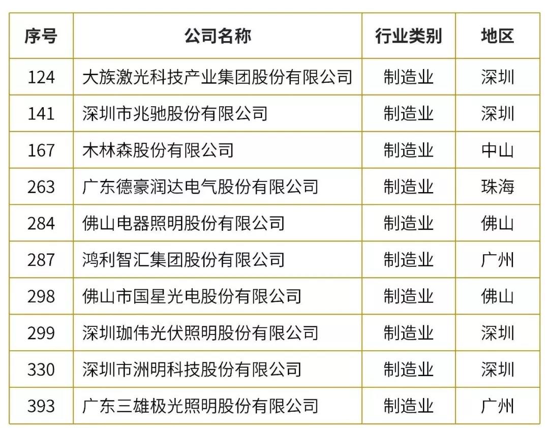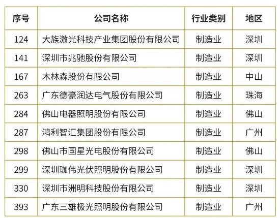 值得注意的是,在2018年广东企业500强的榜单中,共有10家LED照明相关企业入选,其中,广东德豪润达电气股份有限公司位列行业第四,排名总榜单第263位。