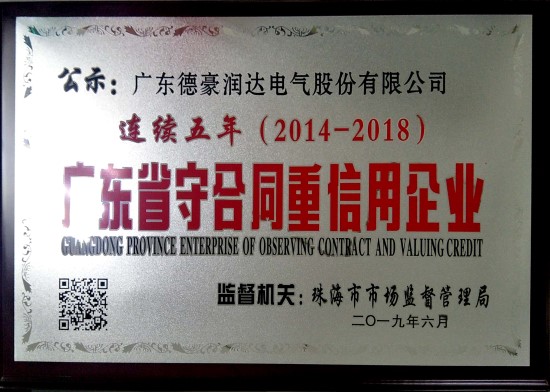 日前,广东省工商行政管理局正式公示了2018年度“广东省守合同重信用企业”名单,广东德豪润达电气股份有限公司凭借良好的信誉与契约精神顺利通过评审,连续五年获得此项殊荣。