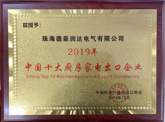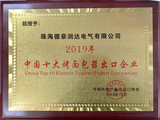 12月4日,第七届中国电子家电企业国际化高峰论坛在浙江余姚成功举办。会议期间,中国机电产品进出口商会隆重发布了“一带一路”优势企业——2019中国电子家电出口百强企业名单。我司子公司珠海德豪润达电气有限公司榜上有名,入选“2019年中国十大厨房家电出口企业”“2019年中国十大咖啡壶(茶壶)出口企业”“2019年中国十大烤面包器出口企业”“2019年中国十大电烤箱出口企业”四大榜单,与美的、格兰仕、苏泊尔、新宝等老牌劲旅争奇斗艳。