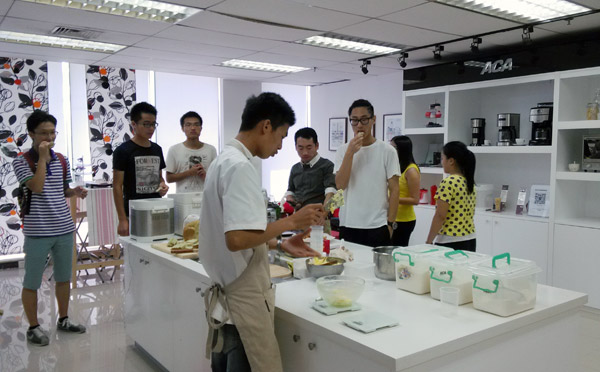 烘焙师黄植彬一一回答了同学们的提问,并且邀请同学们一起制作面包、曲奇、蛋挞等美食,体验烘焙的乐趣。在体验烘焙的过程中,同学们对ACA的产品再次深有感触:作为全球西式生活电器工业文明的代表,ACA的产品不管从开发设计、质量控制,还是用户体验都是严格按照国家标准,并融合中国人的习惯,研制出最适合中国人的西式高档烘焙电器。